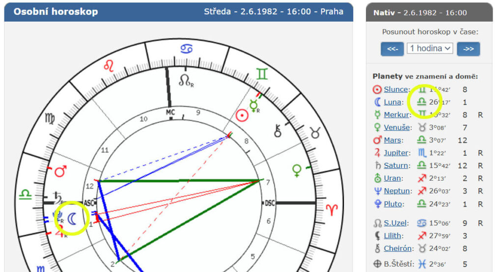 Rozdíl několika hodin může znamenat úplně jinou Lunu a tím i jiný způsob prožívání emocí. Pokud čas narození neznáte přesně, výsledek může být nepřesný nebo zavádějící.